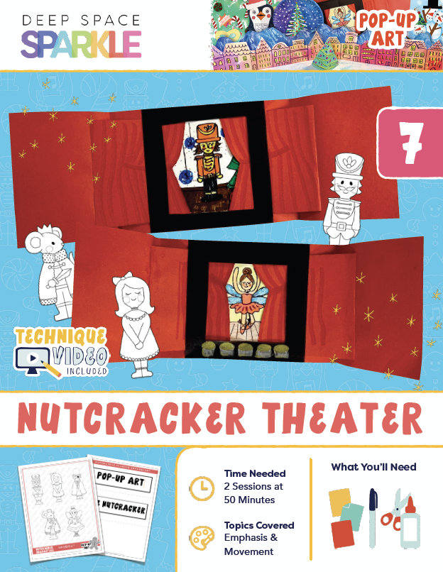 The Talking Nutcracker lesson invites students to bring their artwork to life with their own chosen details and a simple pop-up mechanism. To get started, students make a mouth that... Learn More