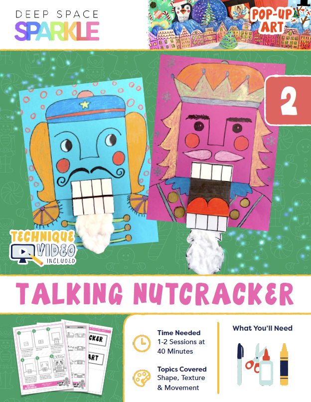 The Talking Nutcracker lesson invites students to bring their artwork to life with their own chosen details and a simple pop-up mechanism. To get started, students make a mouth that... Learn More
