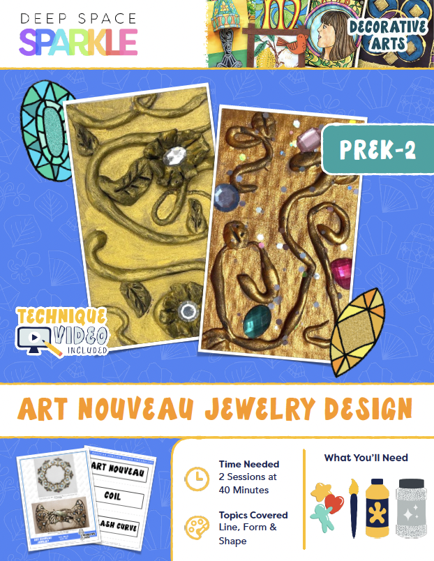 This lesson is inspired by jewelry and metalwork during the Art Nouveau movement, which featured flowing lines and natural imagery. Using Model Magic to form vines, leaves and flowers is... Learn More